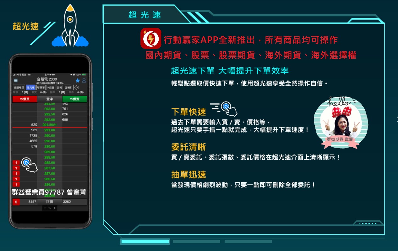 - 豐富的資源、整合多功能的下單軟體還有親切專業的群益 曾韋菁 營業員
