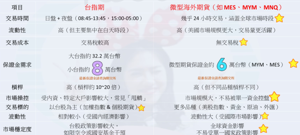 ✅ 交易時間更長,晚上也能交易,適合短線/當沖!